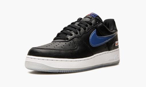 The Kith x Nike Air Force 1 Low ‘NYC Away’ is a collaboration between Ronnie Fieg’s sneaker boutique and Nike on the vintage basketball shoe in the basketball-inspired ‘Home’ and ‘Away’ collection. The black based ‘Away’ version of Kith’s Air Force 1 Low looks to the boutique’s home, New York City, and more specifically, the New York Knicks, for design inspiration, as the shoe features the team’s uniform colors on its design. The black tumbled leather upper is contrasted by a blue jeweled Swoosh on either side and old school ‘NYC’ with an orange Swoosh branding hit on the lateral side of the heel. A ‘Kith Air’ logo with a Swoosh is embroidered on the heel. The detailing is a play on the Air Force 1’s original ‘Nike Air’ branding. A gradient orange-to-blue ‘Kith Air Force 1’ insignia appears on the tongue tag. Release date: December 25, 2021