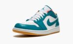 The Air Jordan 1 Low ‘Barcelona’ is a colorway of Michael Jordan’s first signature shoe in the low-top style that draws design inspiration from a sweater that Jordan wore during the ’92 Summer Olympics in Barcelona. The ‘Barcelona’ is dressed in a two-tone, white-and-Cyber Teal upper with white leather on the perforated toe and mid-panel. The overlays and Swoosh appear in glossy Cyber Teal-colored leather for a distinctive, ’90s-esque look. White ‘Wings’ branding is embroidered on the heel and a Cyber Teal Jumpman can be found on the white nylon tongue. The inner lining of both the left and right shoe feature a ‘Barcelona’ inspired motif similar to the abstract tribal pattern found on the apparel that Jordan wore at the 1992 Olympics.