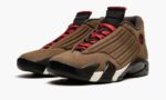 The Air Jordan 14 ‘Winterized’ puts a rugged new spin on Michael Jordan’s fourteenth signature shoe for the winter. As it name implies, the ‘Winterized’ colorway of the retro basketball shoe worn by Michael during his final game as a Chicago Bull replaces the original leather construction for a brown-based, vacuum-molded upper with water-resistant suede panels. The look is reminiscent of classic construction boots. Red accents, including fiery red laces, ’23’ detailing on the heel, ‘Jordan’ on the tongue, and a red Ferrari-inspired Jumpman emblem on the collar, further enhance the shoe’s boot-like appearance. The midsole appears in a matte black finish. Like the original Air Jordan 14, the ‘Winterized’ colorway features a carbon fiber shank plate at the midfoot and heel. Release date: October 16, 2021
