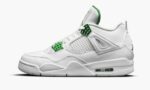 The Air Jordan 4 ‘Metallic Pack – Green’ is one of several colorways that salute Jordan Brand’s storied history. The ‘Metallic Pack’ of Air Jordan 4s from 2020 honor the Air Jordan 1 ‘Metallic’ colorways, which were original makeups of Michael Jordan’s first signature shoe from 1985. Like the other designs in the Jordan 4 ‘Metallic Pack,’ this ‘Green’ variant features an appealing two-toned look with a white leather upper and tonal netting on the mid-panel and tongue. Contrasting metallic Pine Green hits on the lace eyelets and Jumpman insignia on the heel pop against the crisp white base. Green Jumpman branding can be found on the nylon tongue tab and inner lining of the tongue. Staying true to the design of the original Jordan 4 worn by Michael in the ’80s, a visible Air window is located in the heel. The Air Jordan 4 ‘Metallic Pack – Green’ was released on June 24, 2020.