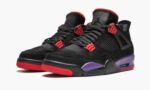 In 2018 Jordan Brand took the original black, purple, and red palette from the Air Jordan 7 and used it to create the Air Jordan 4 “Raptors.” The fierce colorway was rumored to be designed by Drake, drawing inspiration from his beloved Toronto Raptors. The Air Jordan 4 “Raptors” has a premium black suede construction with a purple speckled midsole and bright red accents.