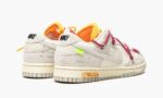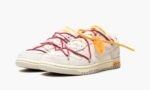 The Off-White x Nike Dunk Low ‘Lot 35’ is one of multiple colorways of the vintage basketball shoe co-designed by Virgil Abloh and Nike for the ‘Lot 50’ collection. Following Abloh’s incredibly popular ‘The 10’ series in 2017 that saw the de-and-re-construction of iconic Nike and Jordan silhouettes, the ‘Lot 50’ collaboration produces 50 unique colorways of the Nike Dunk, all with intricate details. On ‘Lot 35,’ Sail-colored leather appears on the perforated toe, mid-panel, collar, and heel. The hairy suede overlays and Swoosh are dressed in Neutral Grey. Black ‘Nike’ detailing is found on the heel. A secondary, bungee cord-like lacing system appears on the upper. The look is derived from Off-White and Nike’s first Dunk collaboration from 2019. A traditional lacing setup also appears on the upper. Off-White’s signature Helvetica text is found on the medial side. A marbled orange-and-white insert with ‘Lot 35 of 50’ branding dots the lateral side of the cream rubber midsole. Release date: August 9, 2021