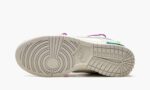 The Off-White x Nike Dunk Low ‘Lot 45’ is one of 50 colorways of the vintage basketball, skate, and lifestyle shoe designed by Virgil Abloh for August 2021’s ‘Lot 50’ collection. The Off-White and Nike “Lot 50” collaboration is comprised of 50 unique Dunk colorways, and succeeds the pair’s “The 10” series from 2017, one of the most popular, sought after sneaker collaborations in history. Here, on ‘Lot 45,’ Sail canvas appears on the base, including on the perforated toe, mid-panel, collar, and heel. Neutral Grey leather panels and Swoosh branding contrasts the look. Black ‘Nike’ branding appears on the heel and Off-White’s signature Helvetica detailing is found on the medial side. A secondary, bungee cord-like lacing system appears on the upper. The look originated on the first Off-White x Nike Dunk collection from 2019. A traditional lacing setup can also be found on the shoe. On the midsole, a marbled teal-and-black insert with ‘Lot 45 of 50’ branding completes the look. Release date: August 9, 2021