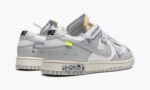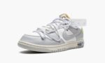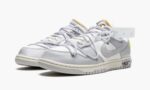 The Off-White x Nike Dunk Low ‘Lot 49’ is one of 50 colorways of the vintage basketball shoe designed by Virgil Abloh for the popular ‘Lot 50’ collaboration. From August 2021, Off-White and Nike’s ‘Lot 50’ series features 50 unique colorways of the classic low-top shoe. On ‘Lot 49,’ Sail canvas appears on the base, including on the perforated toe, mid-panel, collar, and heel. Neutral Grey leather panels and Swoosh branding contrasts the look. Black ‘Nike’ branding appears on the heel and Off-White’s signature Helvetica detailing is found on the medial side. A secondary, bungee cord-like lacing system appears on the upper. The look originated on the first Off-White x Nike Dunk collection from 2019. A traditional lacing setup can also be found on the shoe. On the midsole, a marbled black-and-white insert with ‘Lot 49 of 50’ branding completes the look. Release date: August 9, 2021