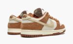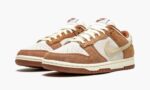The Nike Dunk Low PRM ‘Medium Curry’ dressed the former performance basketball and current lifestyle shoe in an autumnal colorway. One of the many strengths of the Dunk is its ability to combine different colors and textures together in an appealing way, and the ‘Medium Curry’ is no exception to the sentiment. Hairy brown suede panels on the forefoot, eyelets, collar, and heel stand out against the white leather base. A shade of cream called ‘Fossil’ is applied to the suede Swoosh and the heel tab with brown ‘Nike’ embroidery. Brown ‘Nike’ branding resides on the tongue tag and a white midsole and brown outsole put the finishing touches on yet another ultra fresh Nike Dunk.