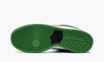 The Nike SB Dunk Low ‘Classic Green’ is a colorway of the low-top skate shoe that draws design inspiration from the Boston Celtics. In addition to referencing the storied basketball team’s uniform colors, the ‘Classic Green’s’ white, black, and green color block mimics the appearance of the Air Jordan 1’s original ‘Black Toe’ colorway. Specifically, the white leather perforated toe and contrasting black leather toe cap and forefoot replicate the look of the ‘Black Toe.’ As for the rest of the shoe, details include a black leather Swoosh, a Classic Green leather collar and heel, and green laces. Green ‘Nike SB’ and Swoosh detailing can be found on the black nylon tongue tag. Tonal ‘Nike’ branding is embroidered onto the heel. A two-tone, white rubber midsole and black outsole complete the clean look.