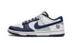 The NBA x Nike Dunk Low ’75th Anniversary – Brooklyn Nets’ is a special edition colorway of the vintage basketball shoe that celebrates the NBA’s 75-year anniversary. While nicknamed the ‘Brooklyn Nets,’ the shoe’s details and branding are indeed inspired by the team’s time in New Jersey. As the New Jersey Nets, the Eastern Conference basketball team featured navy blue and white as its primary uniform colors, and the two colors appear on its various overlays. The New Jersey Nets’ old school logo is found on the heel. Unique branding celebrating the NBA’s 75-year anniversary appears on the tongue and red ‘Nike’ detailing is embroidered on the heel. A two-tone, white midsole and blue rubber outsole complete the look. Release date: October 19, 2021