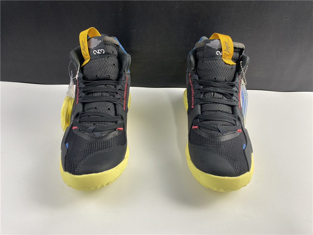 Jordan MID running shoes black, blue, and red