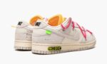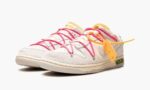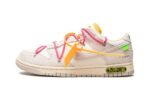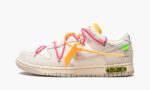 The Off-White x Nike Dunk Low ‘Lot 17’ is one of multiple colorways of the classic low-top shoe created by Virgil Abloh in collaboration with Nike in August 2021. A monumental collection that spans 50 unique colorways of the retro basketball shoe, the Off-White and Nike ‘Lot 50’ line succeeds Abloh’s influential ‘The 10’ collaboration with Nike from 2017. On ‘Lot 17,’ Sail canvas appears on the toe, mid-panel and collar. The overlays and Swoosh are constructed in Neutral Grey leather. Black ‘Nike’ branding is printed on the heel and Off-White’s signature Helvetica text is found on the medial side. A secondary, bungee cord-like lacing system is added to the upper in addition to a traditional lacing setup. The look is carried over from Off-White’s first Nike Dunk collaboration from 2019. A marbled green-and-yellow insert with ‘Lot 17 of 50’ appears on the midsole. Release date: August 9, 2021