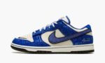 The Nike Dunk Low Jackie Robinson boasts a Brooklyn Dodgers color palette with a light grey Durabuck upper, royal blue leather overlays, an embroidered mini-Swoosh at the toe, and a felted side Swoosh – reminiscent of baseball caps in the late-1940s. Throughout the design, Robinson’s famous quote, “I’m not concerned with you liking or disliking me…All I ask is that you respect me as a human being”, is printed in a pattern format. At the heel, Robinson’s number 42 is embroidered, providing a custom feel.