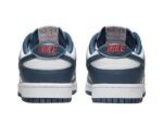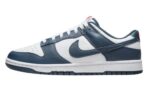 The Nike Dunk Low Valerian Blue arrives in a smooth white leather construction with deep Valerian Blue overlays and Swooshes. Hits of red on the woven tongue label and heel embroidery add a subtle contrast. At the base, a matching white and blue Air sole completes the design.