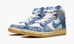The Carpet Company x Nike SB Dunk High is a funky collaboration between the Baltimore based skateboard brand and Nike SB on the beloved skate shoe. In 2020, the Nike SB Dunk and standard Dunk recaptured their former glory and standing as some of the most playful and highly sought after shoes in Nike’s footwear collection. Due in no small part to the release of too-many-to name collaborations and returning ‘OG’ colorways, both the skate-ready SB Dunk and lifestyle Dunk were the ‘it’ shoes of the year. The momentum carried over in a big way in 2021 thanks to models like this Carpet Company design. White-and-blue bleached graphic overlays on the forefoot, eyelets, collar, heel, and Swoosh logo garner attention against the stark white leather base. The blue material can also be worn away or cut off to reveal another colorful graphic underneath. Carpet Company embroiders its ‘C’ star motif on the heel and a small tan suede overlay appears on the bottom of the mid-panel above the intentionally-aged yellow midsole. A co-branded tongue tag is stitched on top of the white mesh tongue and the gum rubber outsole provides plenty in the way of grip for skateboarding. Release date: March 12, 2021.