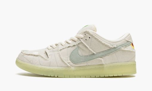 The Nike SB Dunk Low ‘Mummy’ is a Halloween 2021 colorway of the skate shoe that mimics mummy wraps with its festive design. Yet another popular look for the SB Dunk that pays homage to Halloween, the ‘Mummy’ features a frayed, tear-away canvas construction inspired by mummy wraps. Unique eye embroidery appears on the heel of the shoe. Seafoam-colored Swooshes grace either side. On the tongue tag, neon green ‘Nike SB’ detailing adds a subtle pop of color against the neutral-colored look of the upper. Special Halloween-inspired imagery is printed on the insole and Eye of Horus graphics can be found on the underside of the puffy tongue. A glow-in-the-dark outsole completes the look.
