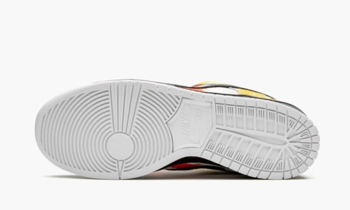 The Nike SB Dunk Low ‘Rayguns – Black’ is a redesigned colorway that brings back the classic SB Dunk that released back in 2005. The black “Rayguns” SB Dunk is part of a ‘home/away’ pack released in December 2019 that reproduces the original black and white colorways, but with a tie-dye treatment across the upper. The 2019 pack is a tribute to the late Sandy Bodecker, the Nike executive responsible for the rise of Nike SB in the early 2000s. Bodecker often wore a tie-dye Rayguns hoodie, which is the inspiration for the bringback of the “Rayguns” Dunks in his honor. This colorway features a black premium leather base with orange and yellow tie-dye accents. A green embroidered Raygun character can be found on the lower portion of the upper near the midsole. The Nike SB Dunk Low ‘Rayguns 2019 – Black’ was released on December 27, 2019.