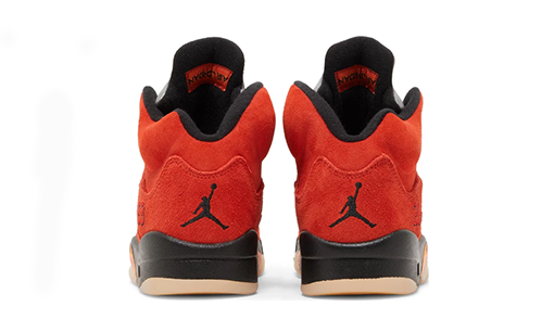 The Women’s Air Jordan 5 Retro ‘Dunk on Mars’ pays homage to Spike Lee’s alter ego, Mars Blackmon, whose planetary namesake is also known as the Red Planet. To that end, the heritage silhouette sports a scarlet suede upper, accented with translucent quarter-panel netting and contrasting black eyelets. Jumpman branding appears on the silver reflective tongue, while ‘23’ is embroidered on the lateral heel. The sneaker rides on an Air-assisted black polyurethane midsole with fiery shark-tooth detailing in orange and red. Underfoot, a yellow-tinged translucent rubber outsole features a herringbone tread for optimized grip.
